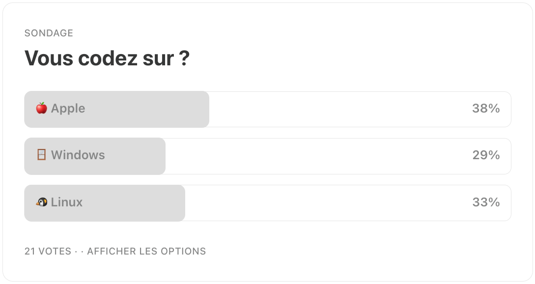 Guillaume avait lancé un petit sondage début mars pour connaitre votre plateforme de développement.